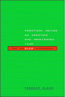 Title: The Weblog Handbook: Practical Advice on Creating and Maintaining Your BlogAuthor: Rebecca Blood Publisher: Basic Books; 1st edition (July 2, 2002) - 144 pages "Finally a book for anyone who has ever thought about starting a Weblog but wasn't sure how to post, where to find links, or even where to go to register." In Amazon |